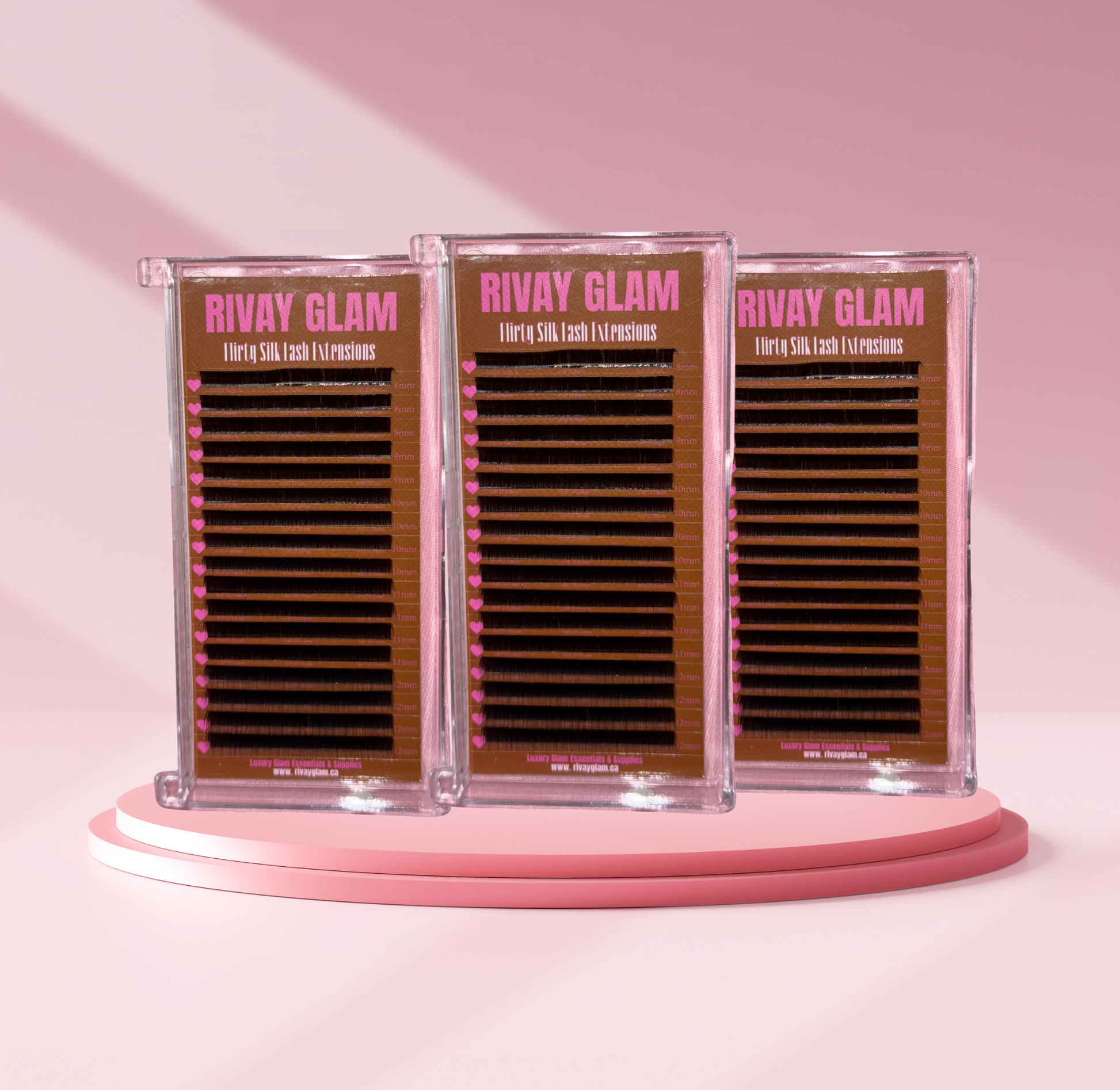 Introducing Rivay Glam's 0.07mm Brown Flirty Lash Trays—expertly crafted for lash artists aiming to deliver the signature "Flirty Set" with a soft, natural allure. These trays are perfect for creating subtle, sultry looks that enhance the client's natural beauty.